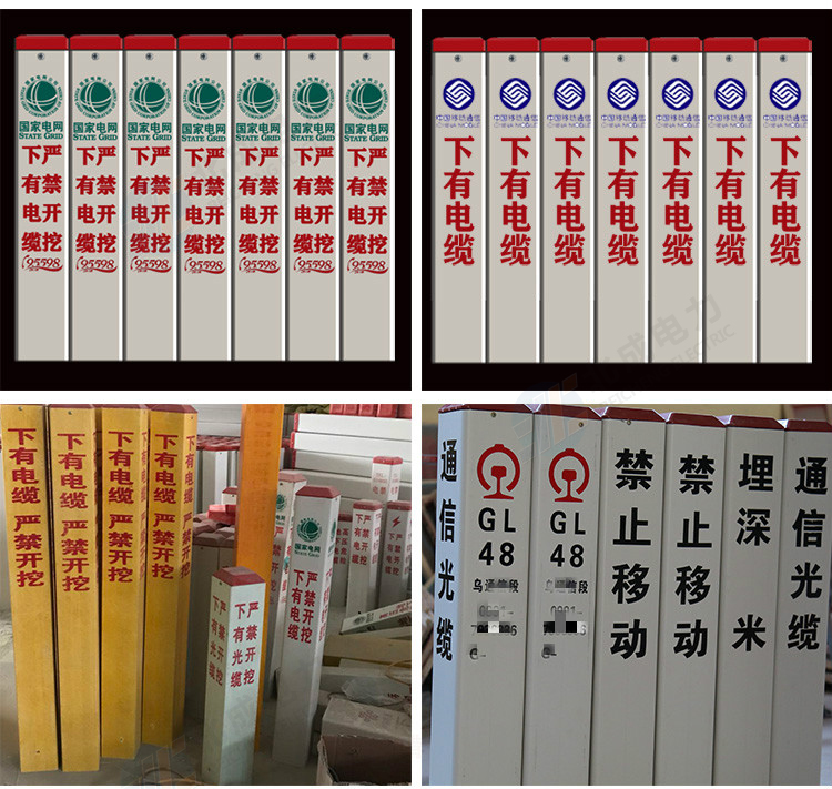 電纜標志樁、油氣標志樁、通信標志樁、光纜標志樁、自來水標志樁、鐵路標志樁、公路里程樁。